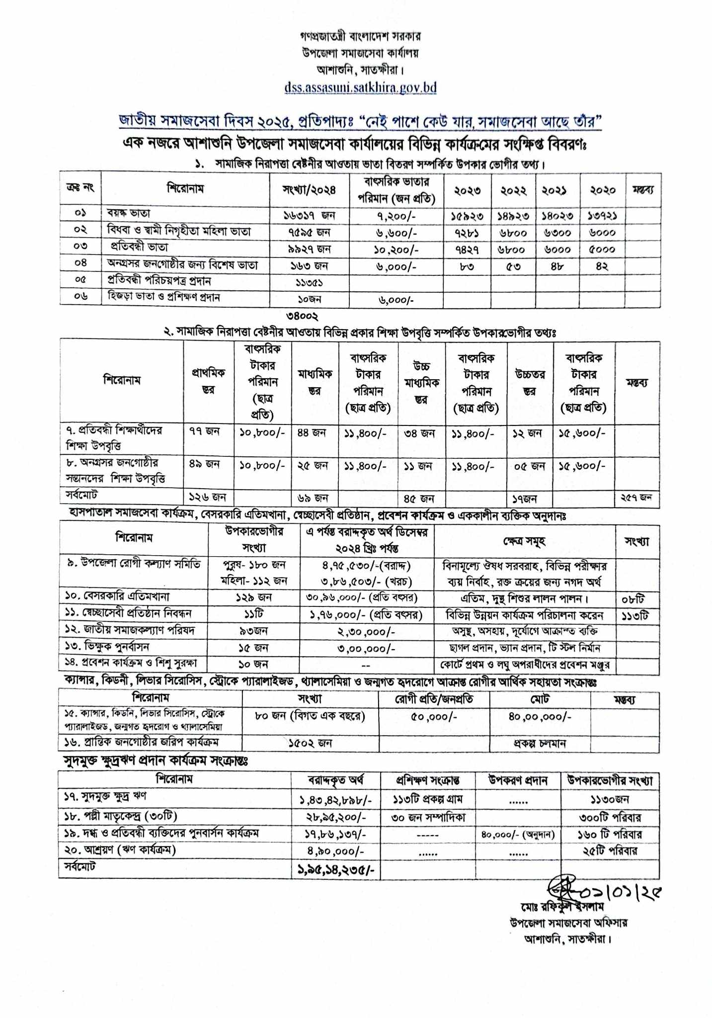 উপজেলা সমাজসেবা কার্যালয়, আশাশুনি, সাতক্ষীরার মাধ্যমে অত্র উপজেলাধীন সকল অসহায়, দরিদ্র, অনগ্রসর, প্রান্তিক ব্যক্তিদের দ্রুত সময়ের মধ্যে সমাজের মূল স্রোতে আনায়নের মাধ্যমে সহায়তা প্রদান ও জীবনমান উন্নয়ন।